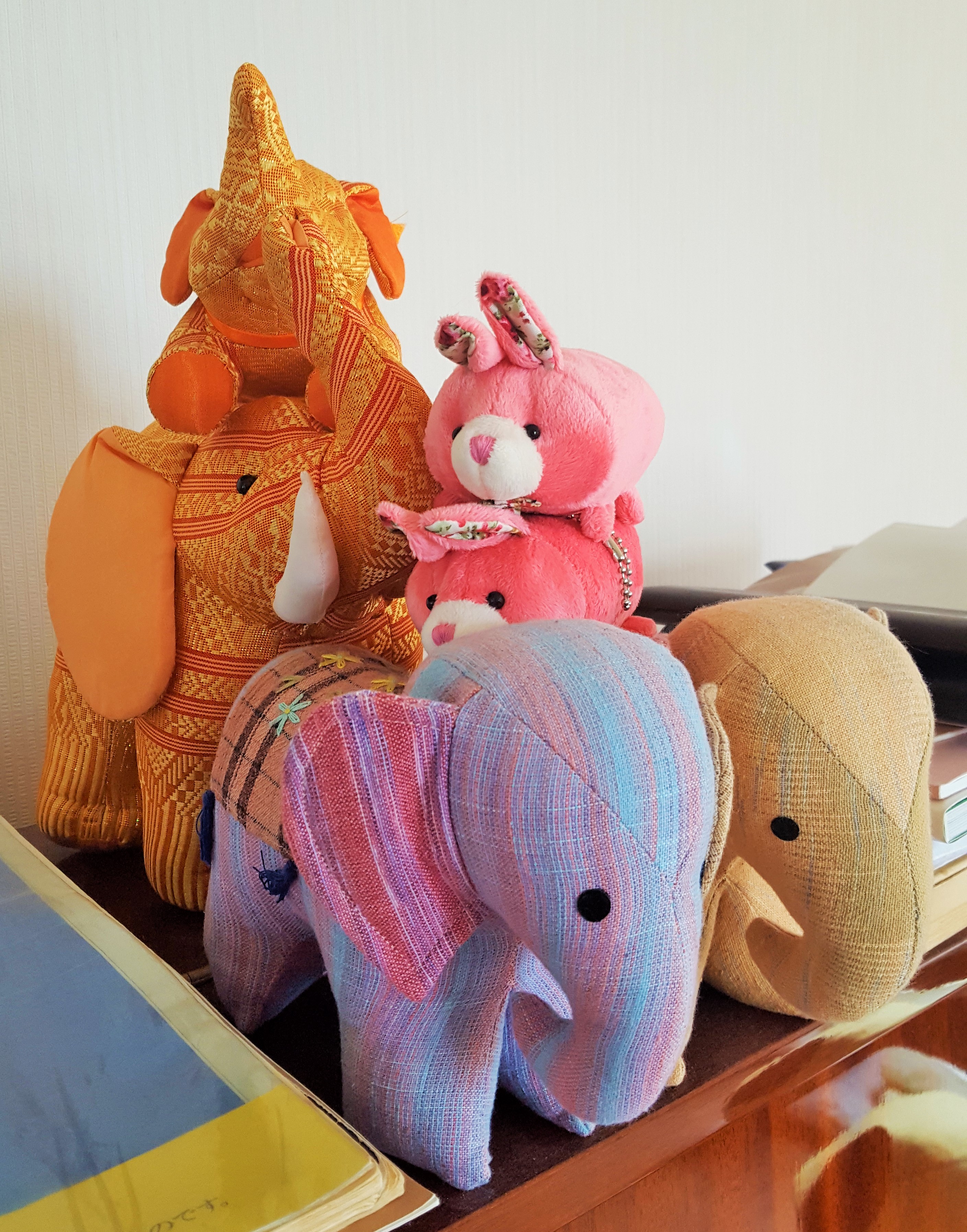 StandardHere is twin Kasane-chan, layered babies. They’ve come onto Ms. Piano recently, met with Mei-Shun at one of her favorite pâtisseries Arles. Nobody know if they are either bear or rabbit, even pug or piggy, yet anyway cute creatures have no problem to join her family. Sweet elephants, please get along with these pink friends. Would their ears stand straight when one stop mounting on another?