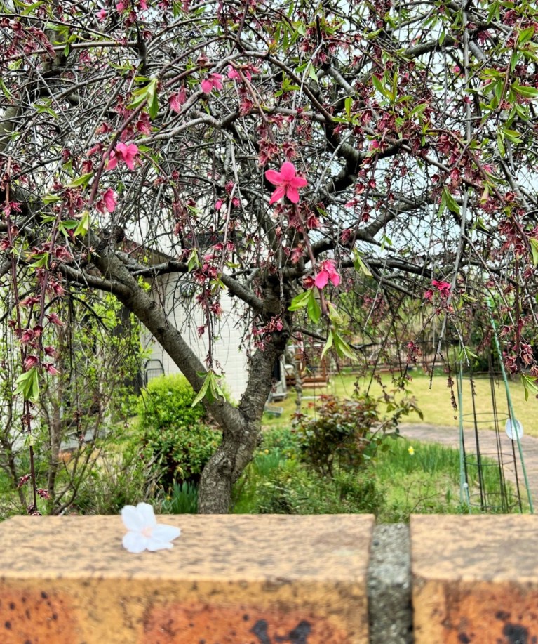 StandardMomo-chan, your flower shape resembles Ms. White. She is a lovely gift from a cherry tree behind a clinic Mei-Shun goes to see Dr. I, her home dermatologist. Allergy between clavicles still prevents her from putting on kimono — meaning kabuki dance lesson. That reminds her of recent news featuring actor 尾上菊五郎, or previous 菊之助 and our master 菊ノ上扇舎.
