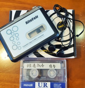 StandardMaster Bando kindly recorded 恋の手習い=love lesson from 京鹿子娘道成寺 for Mei-Shun. Music source of the former is a cassette tape only, not CD nor memory stick. The latter therefore had to order a converter, hoping to give longevity to it. It reminds her of beloved Master Mei-Shu who used to make walking exercise on such a gadget called “walkman”.