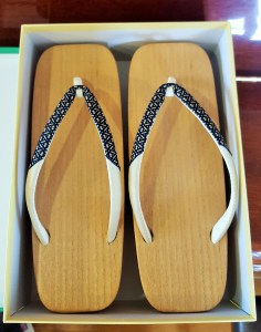 StandardYes, Shin finally brought Mei-Shun to 丸屋履物店 in Shinagawa, Tokyo. They sell many kinds of Japanese sandals including 下駄=geta, made of wood. She has put on 草履=zori, plastic ones so far in kimono. Since light and dry sound of geta steps match summer yukata better, she is so much satisfied to have one tailored for the first time in her life.