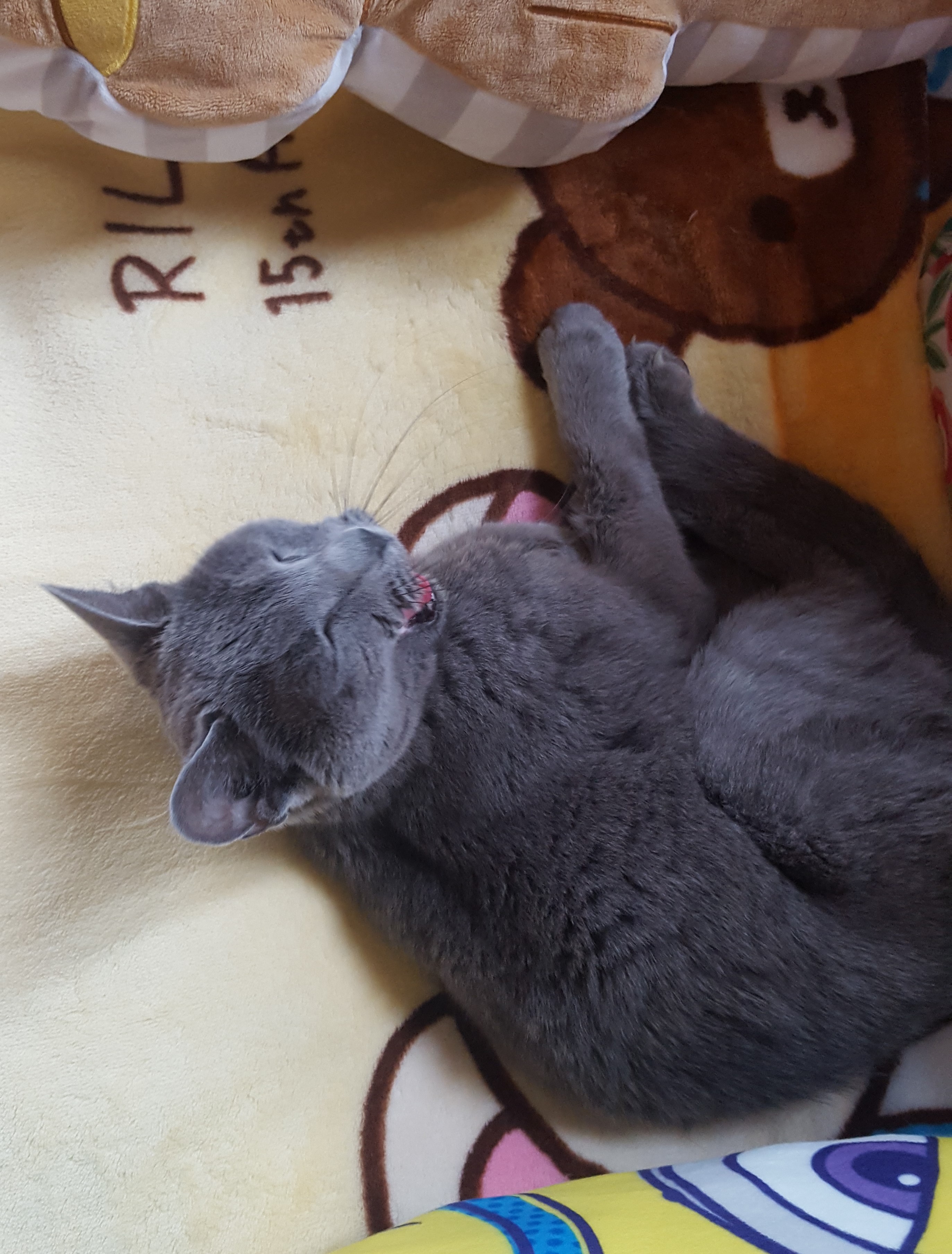 Mei-Shun sees many baby geckos these days; their parents live outdoors, themselves indoors. So cute they are, so little that easy to be Mikan-chan’s target. When she meows weirdly, it means one has been locked on. If it is on the wall for example, it would be safer yet on the floor — fluffy honey, you do not need to hunt foods. Tora-chan did before to survive in the field.