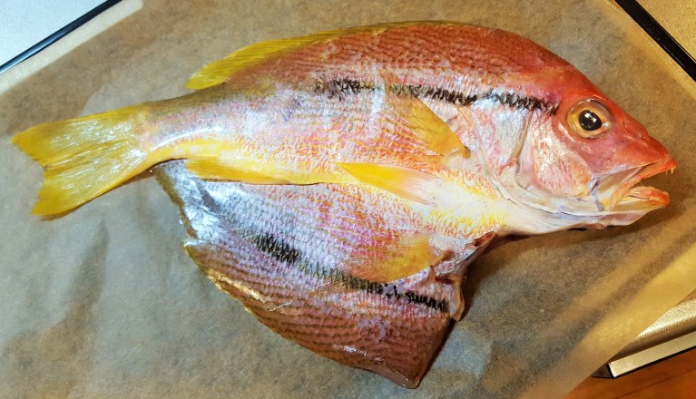 StandardMeow, they say today is Dog Gift Day, reading month and date numbers as its 4 barks in our language. They should be cared with present boxes like Christmas Day? Hmm. Mine is February 22nd, set in the same 1987 as above by chance. By the way, this fish looks like coming directly from the sea of Nagasaki. Is it a treat for me, dad? Or did mom apply that idea of animal welfare?